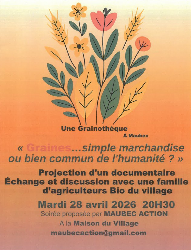 MAUBEC ACTION – Projection d’un documentaire sur les graines, suivie d’un débat