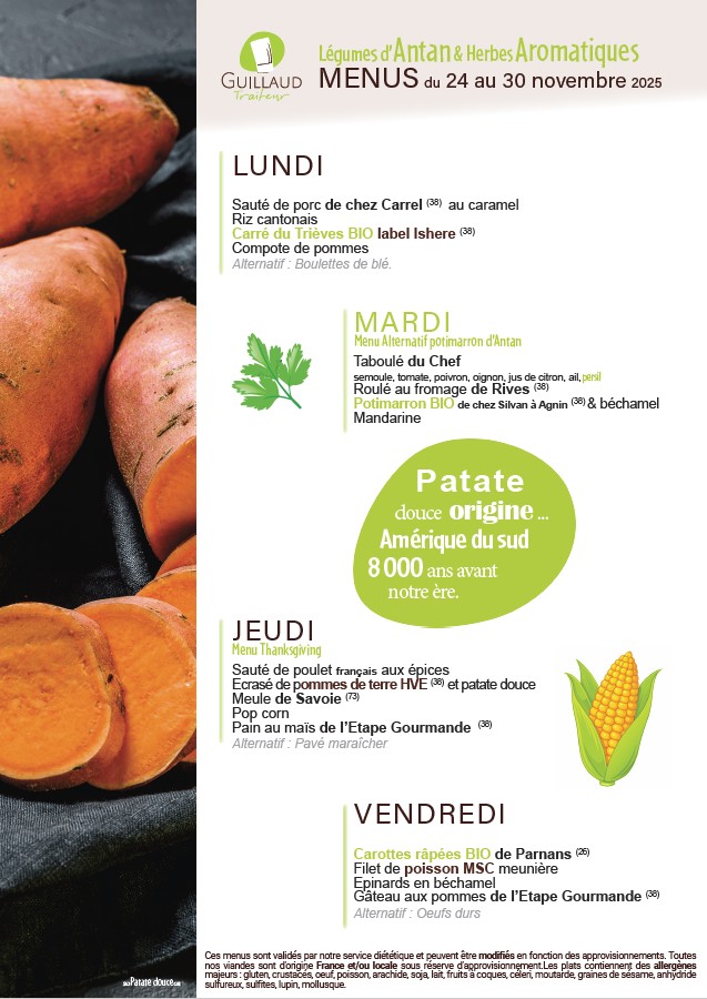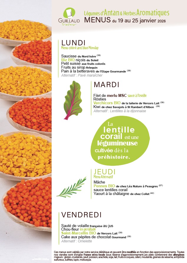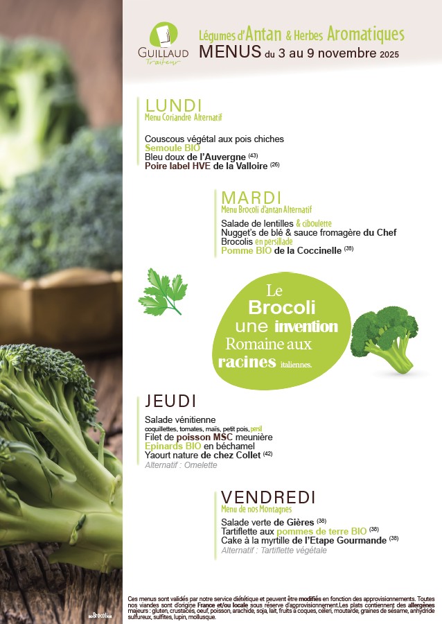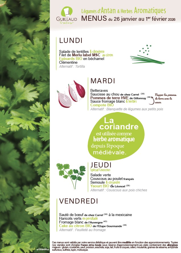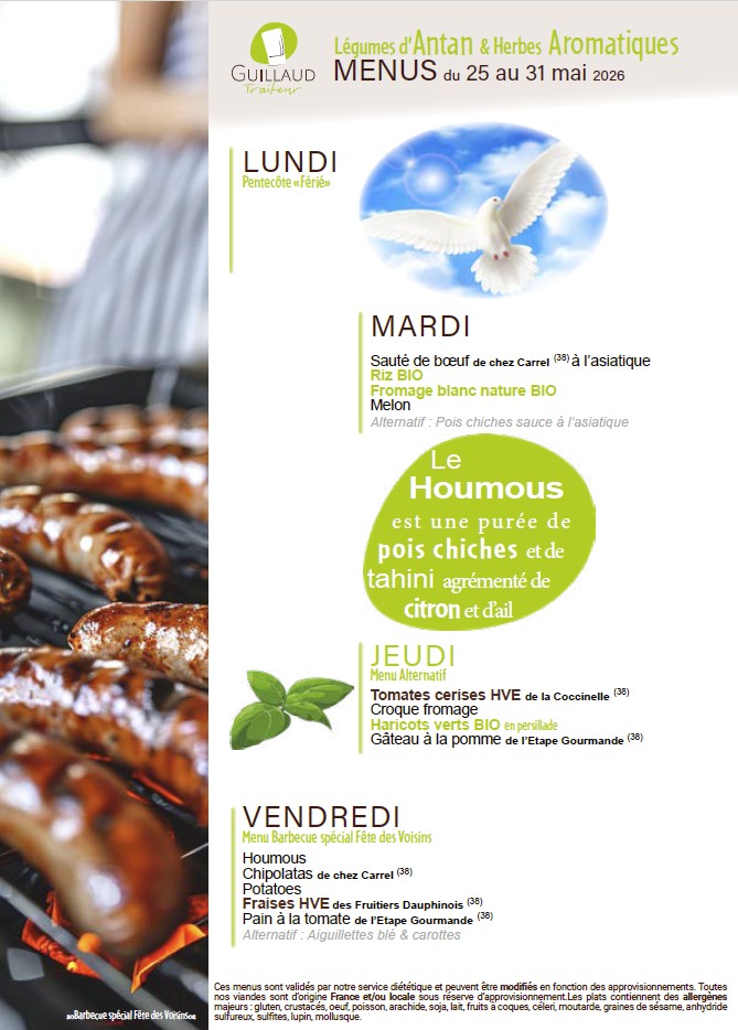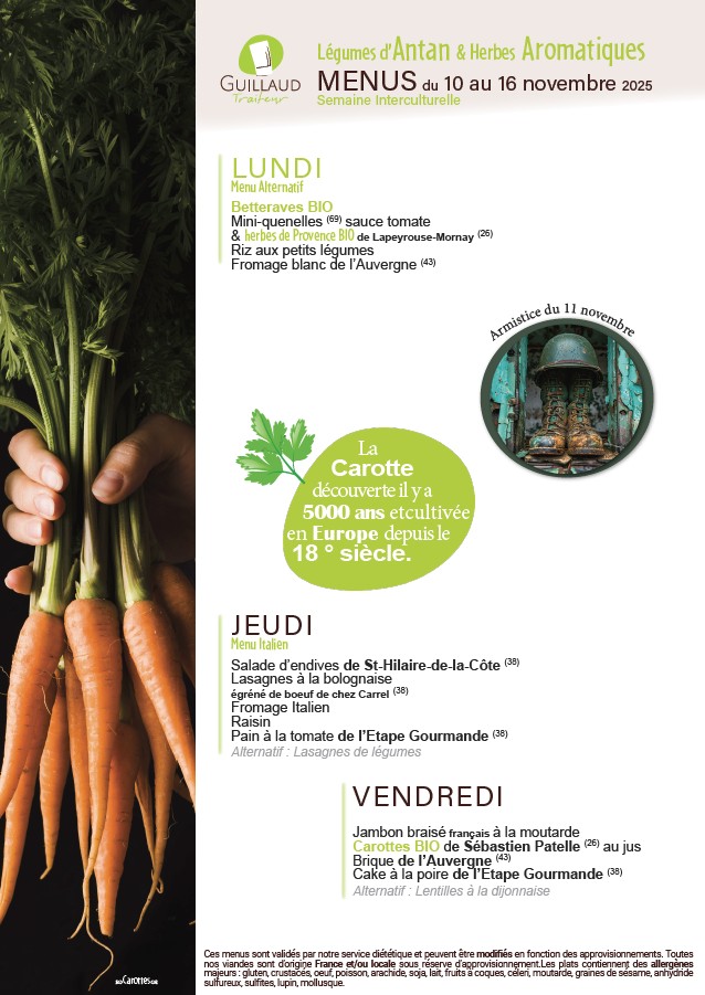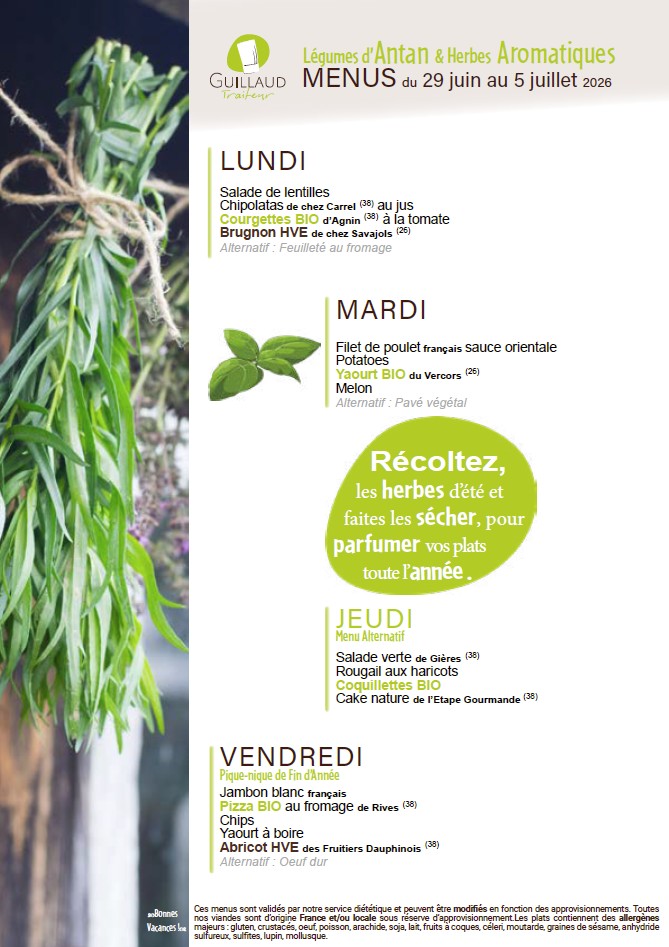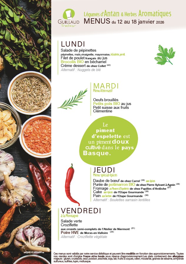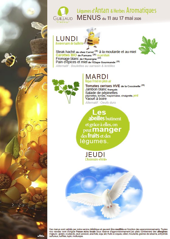 La fourniture des repas de notre restaurant scolaire est confiée à la Société GUILLAUD Traiteur.